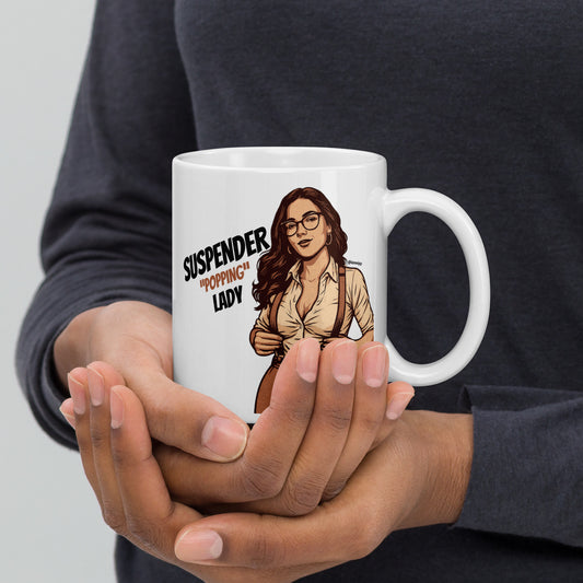 Suspender Lady White glossy mug